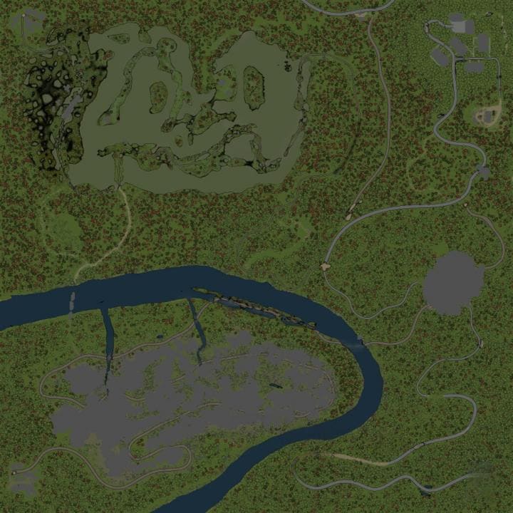 | Card size: 1x1 km. The map contains: 1 closed garage; 1 gas station; sawmill (+1 loading point); 3 cars at the start; 3 sawmills; 9 exploration points. Credits: Sinnergynet |