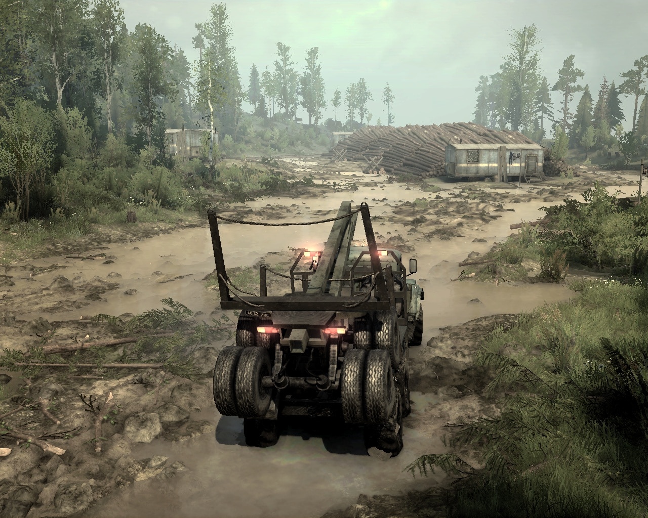 MOD "RIVER CROSSINGS" MAP FOR SPINTIRES: MUDRUNNER (V25.02.21) River crossings, summer. On the map: - 2 garages (closed); Machines: - 3 at the start (replaceable); Card size: 32x32 (1024x1024).