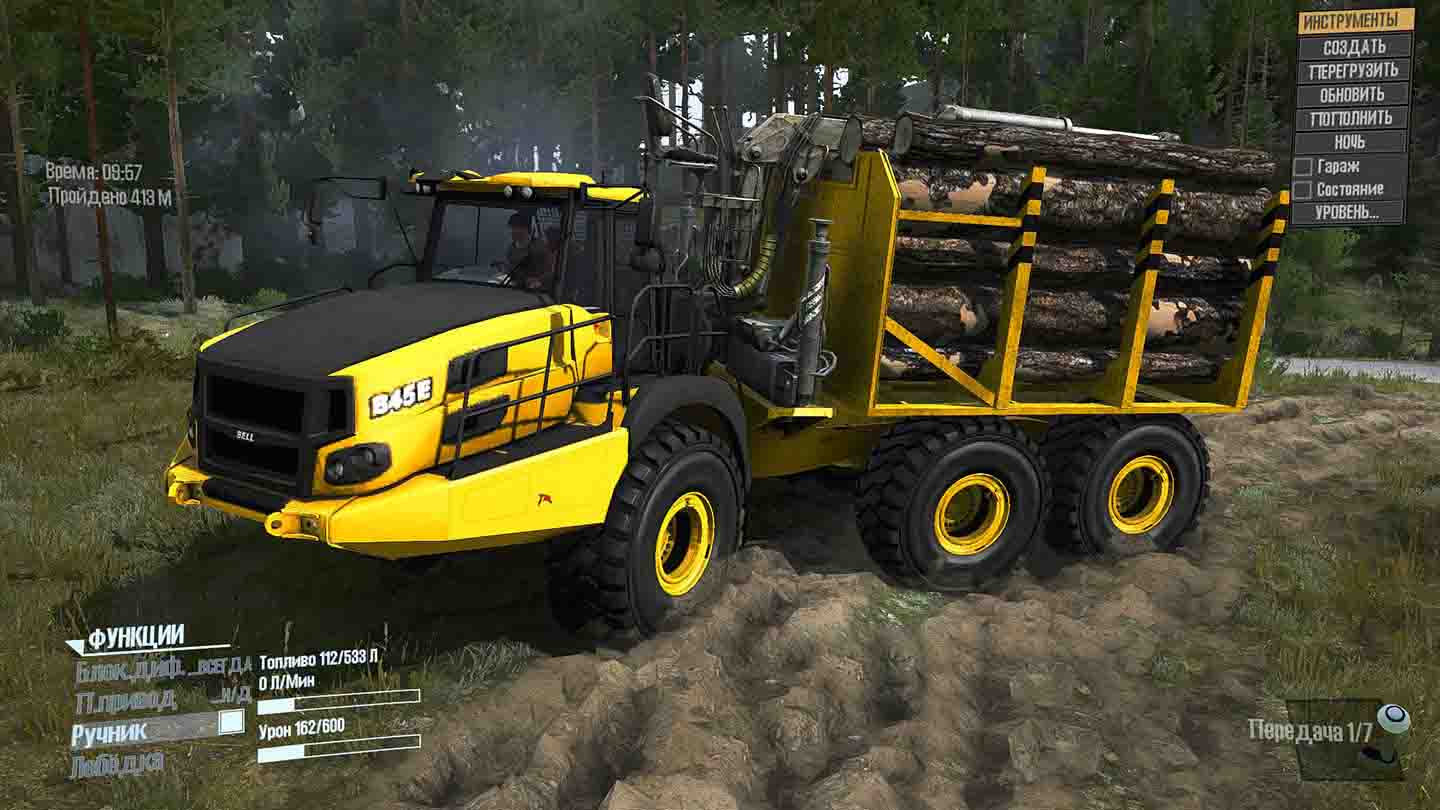 Mod Bell B45E Beta Test Version for Spintires: MudRunner (v14.08.19) Bell Equipment has a wide range of 6 × 6 multi-purpose articulated dump trucks. Different equipment options for articulated dump trucks can be equipped with additional options: a scraper as a trailer for construction work, or any other additional related equipment (water tanks, trailers, etc.). The range of BELL articulated dump trucks presented in Russia consists of 9 models: B18E, B20E, B25E, B30E, B35E, B40E, B45E, B50E, B60E. BELL has also developed a range of special machines for various applications: - Cars with rubber tracks for soft soils; Credits: Silent |