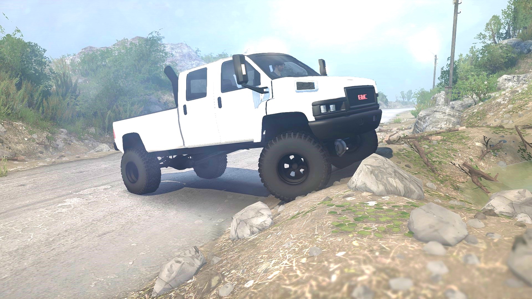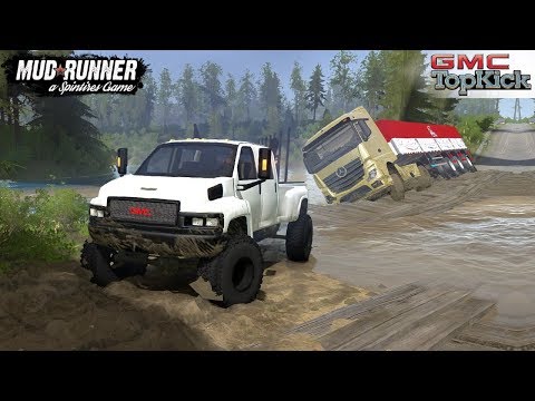 Mod GMC TopKick (Heavily Modified) for Spintires: MudRunner Let's be honest, the old topkick was absolute garbage. Being that it was in that state, I did major modifications to the truck including: New suspension: shocks & coils on front and leaves & shocks on the back. Light Textures: uv mapped the front lights and the top lights to look realistic and not some yellow New Tires (big thanks to Froggy): put new tires on the truck with a sick uv map Body texture: somethings are black that weren't before and the body is now white. Plate: now includes a licsense plate