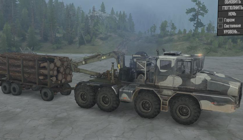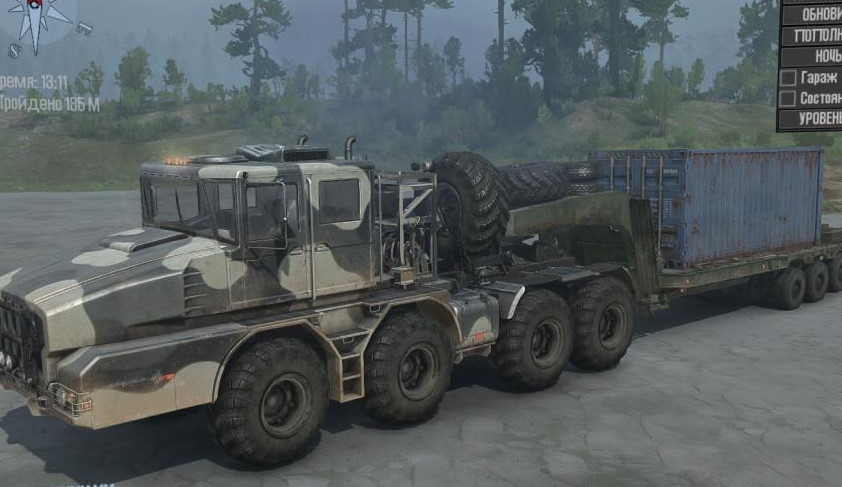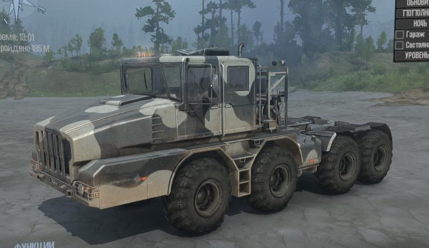 MOD KOLOB 74941 FOR SPINTIRES: MUDRUNNER (V25.02.21) The envelope of a heavy default tractor from the SnowRunner game, in reality it is most likely "MZKT-74135 road train tanker". Addons present