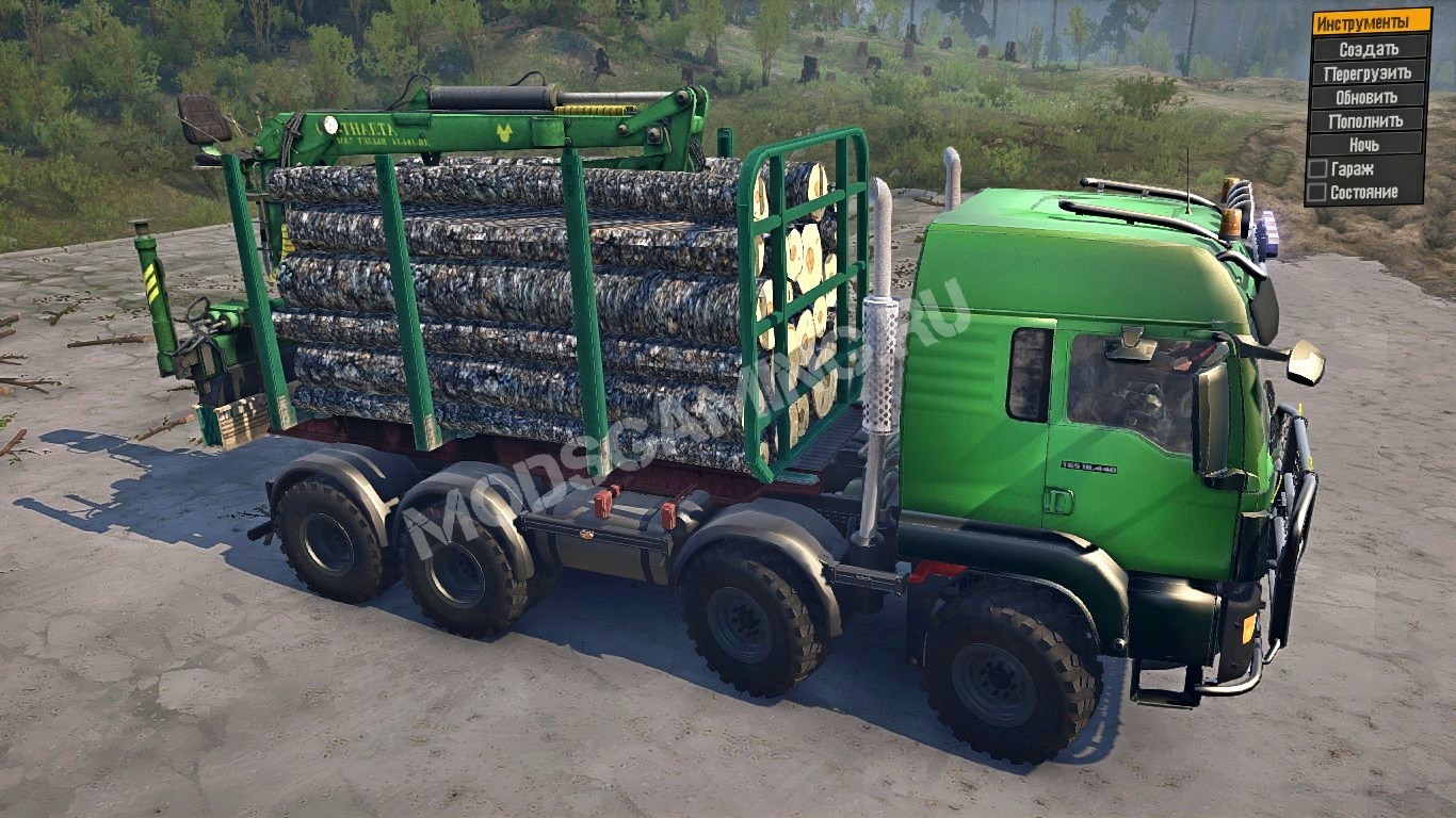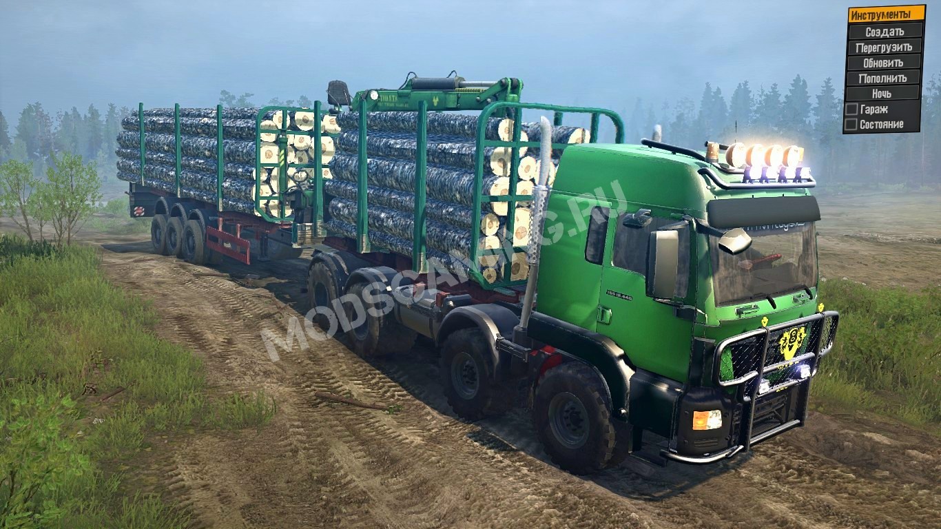 Mod Truck MAN 8X8 for SpinTires: MudRunner It has 7 of its addons + 7 standard. Credits: komissarovvv5, Valerih42rus |