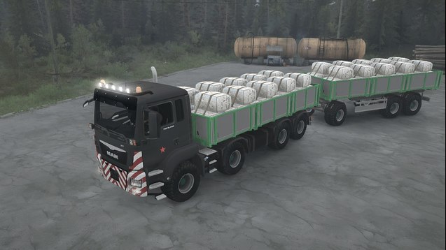 MAN TGS 18.480 8X8 V1.1 for Spintires: MudRunner Fixed the weight of the machine (now should not pop up), fixed the handbrake (all 4 axes are now involved), fixed some textures (should not disappear), added a few standard Addons for the stretcher, added to the archive sounds (those who have not bought dlc america, but most Addons will not). This mod contains two trucks brand Man with a wheelbase 8x8, cross-country. Credits: Slava_102Rus |