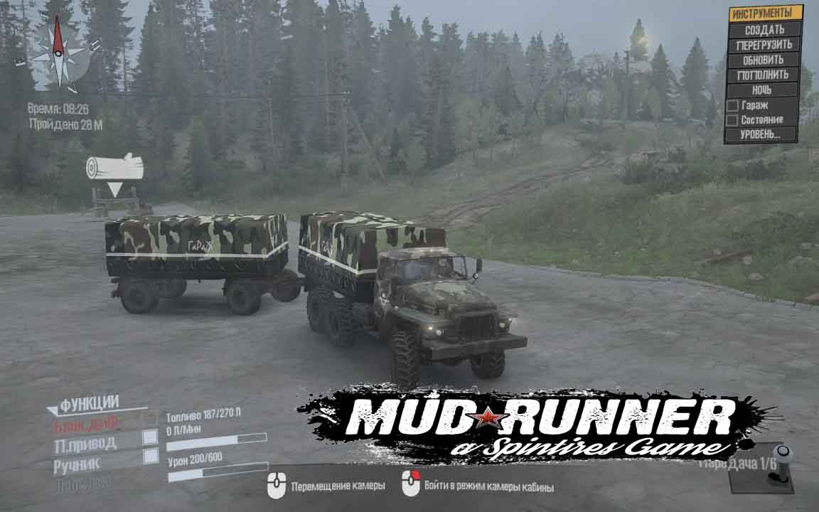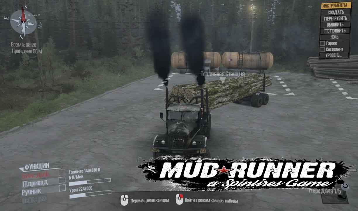 Mod Pak default + version 1.3 for Spintires: MudRunner (v18/05/21) This pack includes 10 default machines (KAMAZ 4310_ 65111, Urals 4320_4320.10, maz 535_537, Crusts 255_260, Gas 66, and ZIL 13O). Changes (management, permeability, textures, add-ons). To all the machines registered the dissolution of the telescope. Author: pokemone, has the ability to transport medium (4 points), and long (8 points) logs without driving into the garage. Version 1.3 for Spintires: MudRunner (v18 / 05/21): Added two trucks Gas 66, and ZIL 13O which was converted by me from the game SpinTires 03,03,16. Corrected the load to the autonomous vehicle, in Ural 4320.10. Credits: VOZHAK |