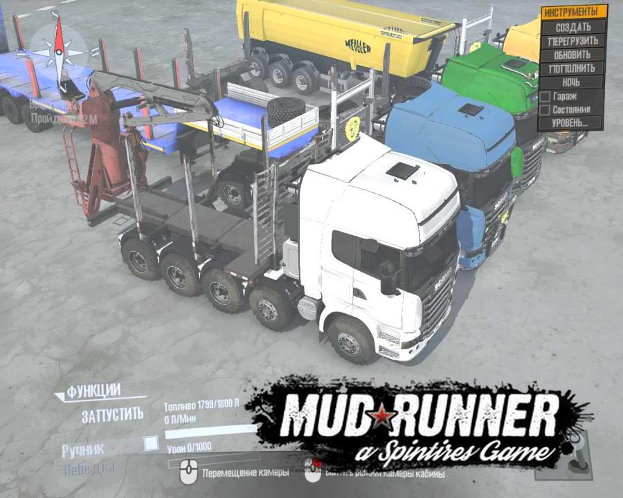 Mod truck SCANIA R730 10X10 COLLOR for Spintires: MudRunner Four colors. Four of its addon. Taken from - Spin Tires v03.03.16 Author - MingFeng Credits: Nicklegosta |