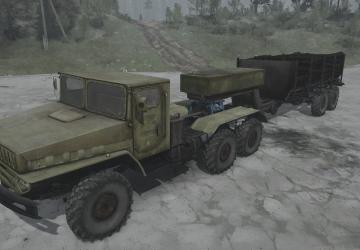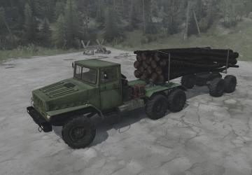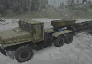 ZIL-443114 and ZIL-6009 as part of a road train. A model of an active road train, created jointly by the Sverdlovsk branch of ZIL and the Bryansk Automobile Plant, intended to replace the serial ZIL-137 road train. It consisted of a ZIL-443114 (6 × 6) truck tractor with an original design and a BAZ-9951 two-axle chassis semi-trailer. Tractor 443114, developed at 21 research institutes, was based on a 150-horsepower chassis of the ZiL-131NV tractor and was equipped with a rectangular front cladding and a fiberglass cab with increased resistance to the damaging factors of a nuclear explosion. If the ZIL-137 semi-trailer had a hydraulic all-wheel drive, which caused a lot of trouble in operation, then a simpler mechanical drive was used here, which does not need reliable high-pressure pipelines. ZIL-443114 has: - 5 own + 8 standard addons; - various animations; - your cargo. ZIL-6009 has: - 4 own addons; - various animations; - your cargo. Available on the Steam Workshop Version 15.06.20 for Spintires: MudRunner (v25.02.21): Minor suspension fixes. Improved wheel grip. Improved animations. Added cistern addon. Added the ability to hitch standard trailers. Various fixes. Credits: tedeums |
