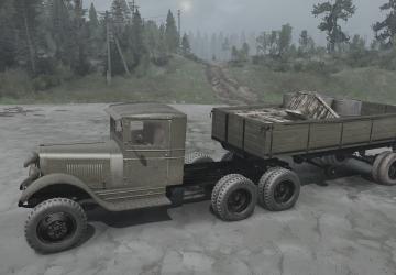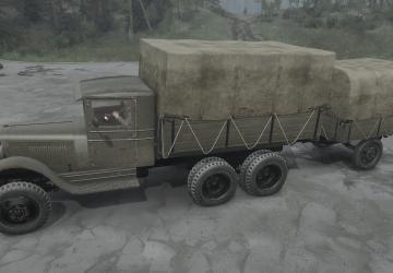 Experienced three-axle all-wheel drive truck ZIS-36 model 1940. It differs from the ZIS-6 with a slightly more powerful engine and, accordingly, a drive to all three axles. All parts (except for the cockpit) and add-ons are made by the author from scratch. Your sounds. Hoods and doors open at the cab, a cooling fan runs on the engine. Addons: 1) Loading platform. Allows you to transport 1 point of short logs, as well as a tanker and barrels of fuel for 2000 liters. The tailgate opens. 2) Two-axle trailer 2-P-2. Allows you to carry 1 point of short logs. The tailgate opens. 3) Konik and trailer-dissolution 1-APR-3. Allows you to carry 3 points of medium logs. 4) Trailer 1-AP-1. 1 garage point 5) Garage parts (utility). 2 garage points 6) PARM PM-5 (mobile workshop). 1000 repair points. 7) Spare. 100 repair points 8) Tanker BZ-35. Holds 1400 liters of fuel. Has its own spare 9) Fifth wheel coupling and semi-trailer PP6. 4 garage points. Cabin with texture and with my modifications, as well as the texture of the rim by Alexey Timoshenko (ruspartizan) Texture part - Tripwire Interactive Credits: MordWin |
