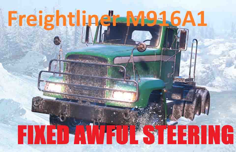 MOD Freightliner m916a1 Steering Fix version 1.0 FOR SNOWRUNNER Modification for SnowRunner fixes the "responsiveness", or rather the handling Freightliner m916a1. It seems that the developers mistakenly set the RESPONSIVENESS item too small, and this item is directly responsible for steering. Now the machine will be easier to manage. Installation: 1. Open the initial.pak file through any archiver (for example, Winrar) along the path SnowRunner \ en_us \ preload \ paks \ client Credits: skerritt-kyle |