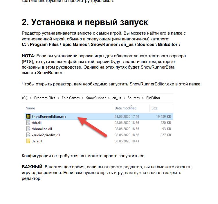 Mod SNOWRUNNER EDITOR GUIDE IN RUSSIAN FOR SNOWRUNNER PDF file translated into Russian for use by the editor SnowRunner Editor. There is also the original in the archive.