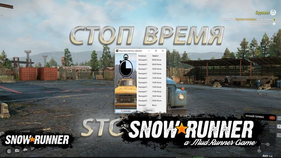 Mod STOP TIME SNOWRUNNER VERSION 8 FOR SNOWRUNNER Added support for game version 8.0 Stop time SnowRunner stops time in the game at the specified time. Made for myself as a weather editing tool. Installation: