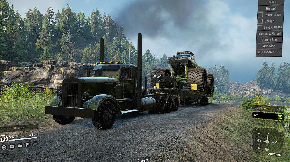 There are 2 versions of the truck in mod - 6x6 and 8x8 (8x8 has a lifting axle, just use the suspension change mode in the options). Have: