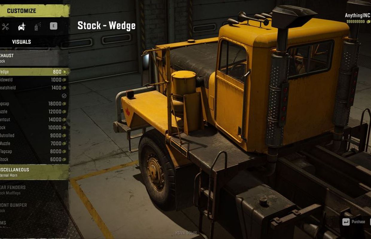 MOD PACIFIC P12W - ROUGHNECK V1.0 FOR SNOWRUNNER Pacific P12W - Roughneck has been enhanced to make SnowRunner comfortable to play. Changes: -Mass reduced from 27,000 kg to 21,000 kg. -Special line of three Detroit Diesel engines. -Wider position to increase stability (from 0 to 0.08). Suspension: - By default, the suspension is reduced from 2.1 (front, rear) to 1.5, 0.5. -Option of increased suspension (2, 1,5). Wheels: - The default tire size is increased to 61 ". Support for 71" (requires a raised suspension). - Spare mount now has 200 repair points. -Mini crane support. - Side and side support. Note: The fuel tank and the “large tap” nozzles were excluded for balance reasons. Aesthetics: -Support of 3 different styles of exhausts (stock, double, single - see images). - Wing stand / mud flaps. -Support 3 different styles of air intakes / tubes. Sound: -Native sounds replaced by P16 -The vehicle is unlocked at level 1 (the same for visual elements / add-ons / attachments) In order not to make the game too simple, the price of the vehicle was increased to ~ 205 thousand dollars (a complete set will cost from 300 one thousand dollars). Installation by subscription. Credits: AnythingINC |