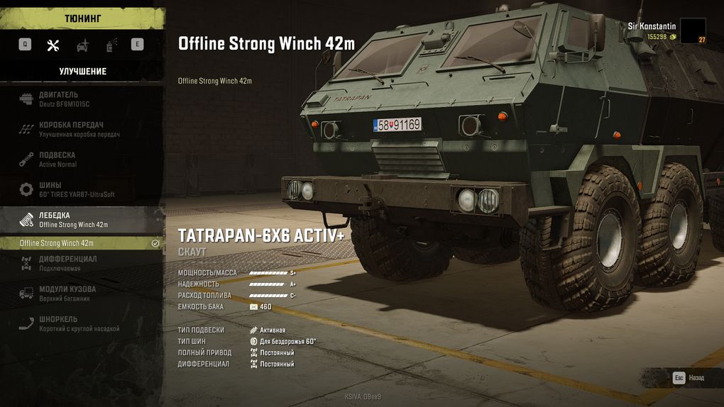 MOD TATRAPAN-6x6 ACTIVE+ FOR SNOWRUNNER Tatrapan 6x6 ACTIVE with active suspension and permanent differential with new wheels. The Tatrapan 6x6 is an armored SUV built on the military version of the Slovak army on the Tatra 815 chassis. 1.1 Fixed winter wheels. All wheels are balanced for their intended use (price reflects flotation in mud). Added a flashing light to the roof. Added a center point on the rear top for the winch (you can evacuate cars by lifting the front axle) APC and decided to show it to you. Credits: masterkosta |