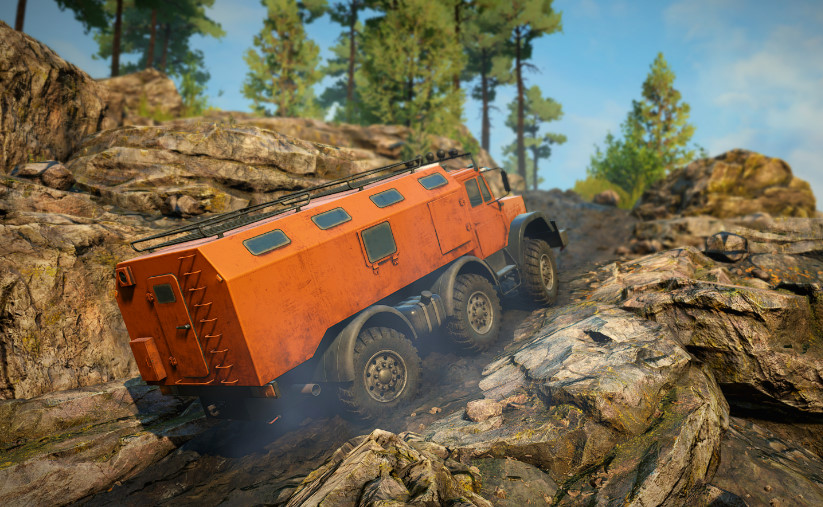 Unique symmetrical 6x6 layout. Fully animated gauges on the dashboard, including animated headlight and differential lock buttons. Works great in mud and other soft ground. Remains fairly balanced compared to the default game.