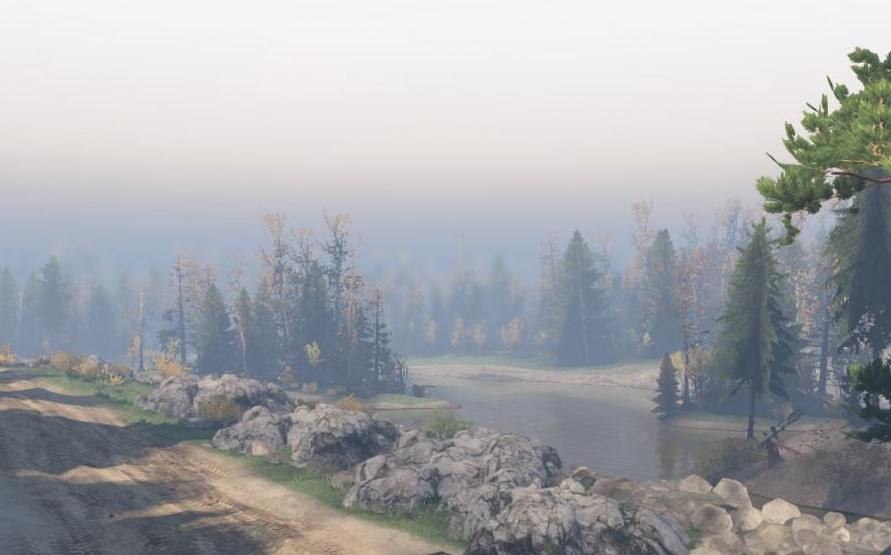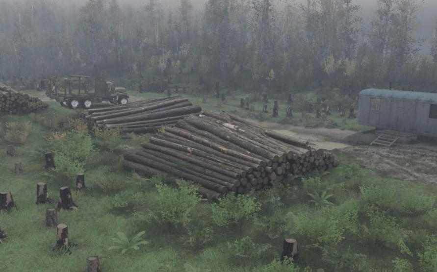 On the map: - 1 garage (closed) - 4 Sawmills - 1 Refueling - 1 Forest felling - 2 points of loading - 7 points of exploration - 3 starting cars - 5 Cars on the map