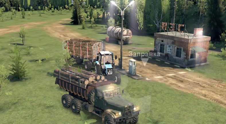 On the map: - 1 garage; - 1 gas station; - 1 felling site; - 4 sawmills; - 6 slots replaceable.