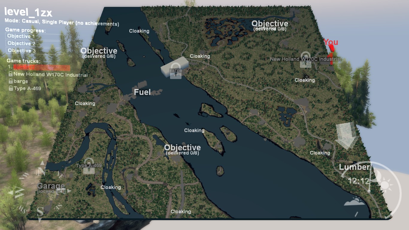 You are a KamAZ driver, taking on any part-time job, in addition to the fact that you work as a civilian driver in a military unit and in your free time you grab any work. Since the family, seven kids on the benches and the shrew's wife is always nagging ... And now you need to deliver the latest portable rocket launchers from the military unit to the training ground (deployment site) for testing. This is your obligatory work, well, there is also a shabashka, to deliver forests to several sawmills, they promised to pay good money.