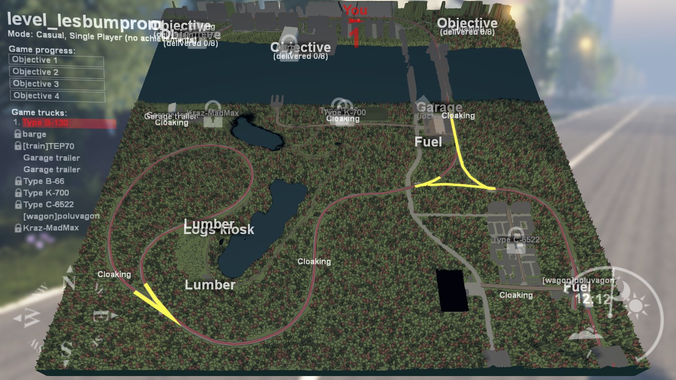 MOD CARD "LESBUMPROM" FOR SPINTIRES V03.03.16 Lesbumrop - a map with different locations, on which you have to become a professional driver, not only by road transport, but also by rail and river, scout the map to find out all its capabilities, deliver goods to ports, train stations and factories, but be careful not to choke in the mud at the zilka. On the map: The archive contains instructions for installing, controlling railway switches and trains, I recommend studying. On the map, a railway is marked in red, yellow - its emergency-dangerous sections, with broken rails, and so on, along the road there are attention signs warning about the beginning of such a section.