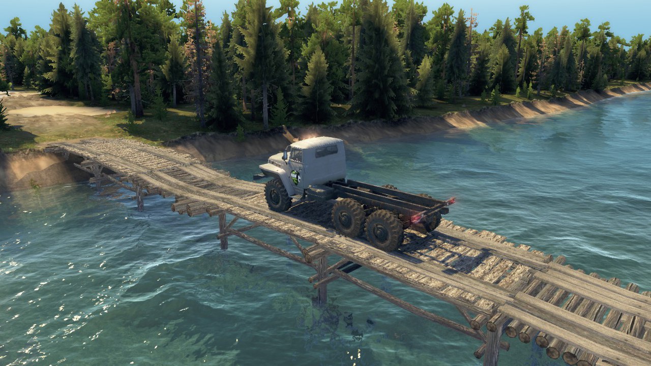 On the map: 6 sawmills 1 loading point 1 felling 2 refills 1 garage (closed) 4 slots for its equipment with garage + ural parts; MAZ-535.
