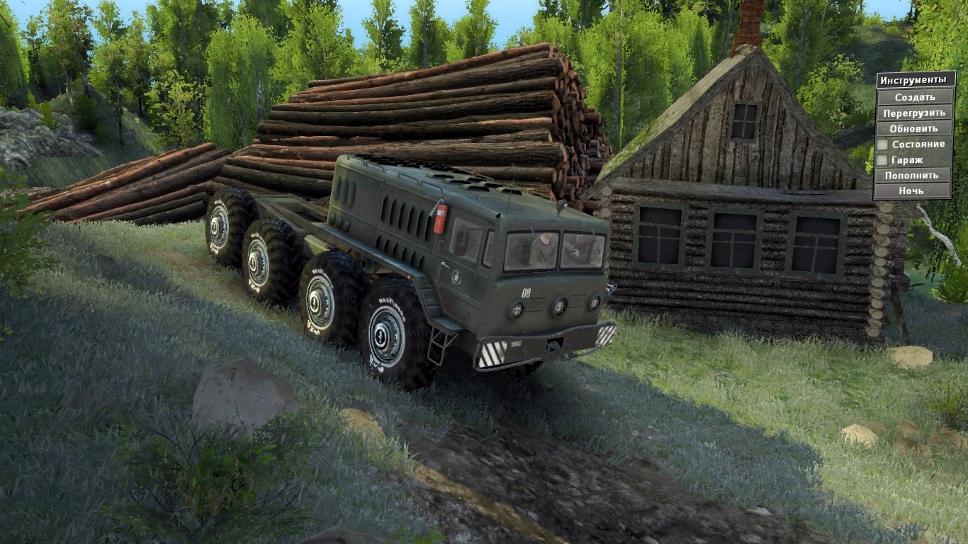 The second work of the Author. On the map: - 1 garage (opened) - 1 refueling - 5 sawmills - 1 felling - 1 point of manual loading - 5 auto + 3 slots