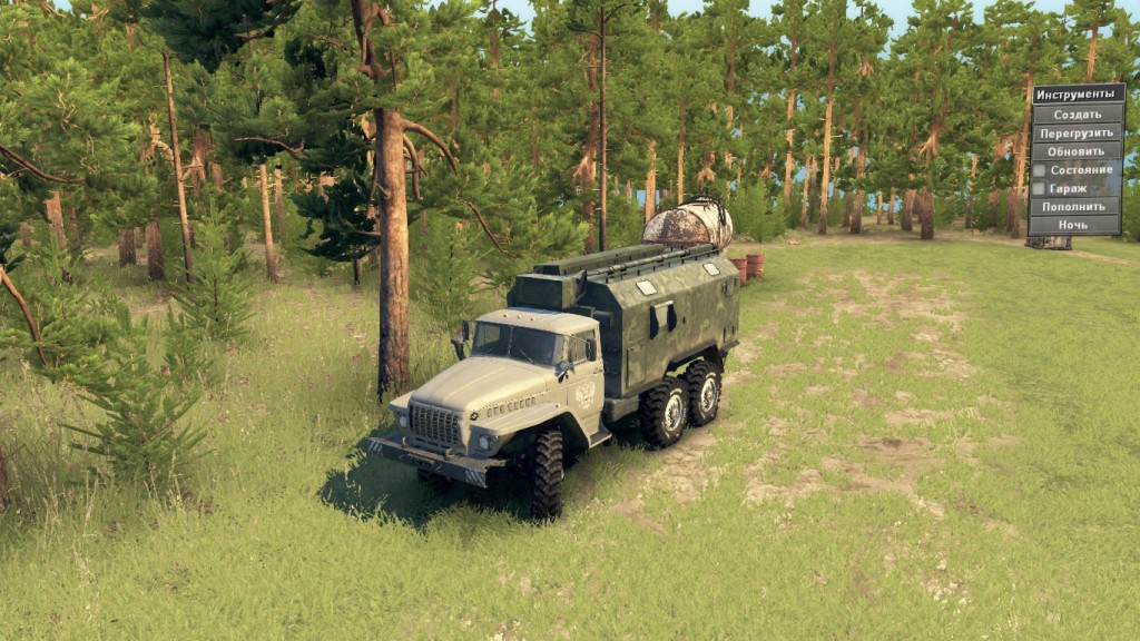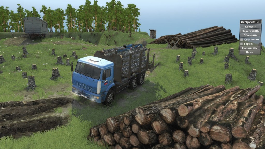On the map: 1 garage (opened) 1 refueling 1 sawmill 1 felling Kraz-255, Kamaz-6522 + 1 slot (Ural-4320)