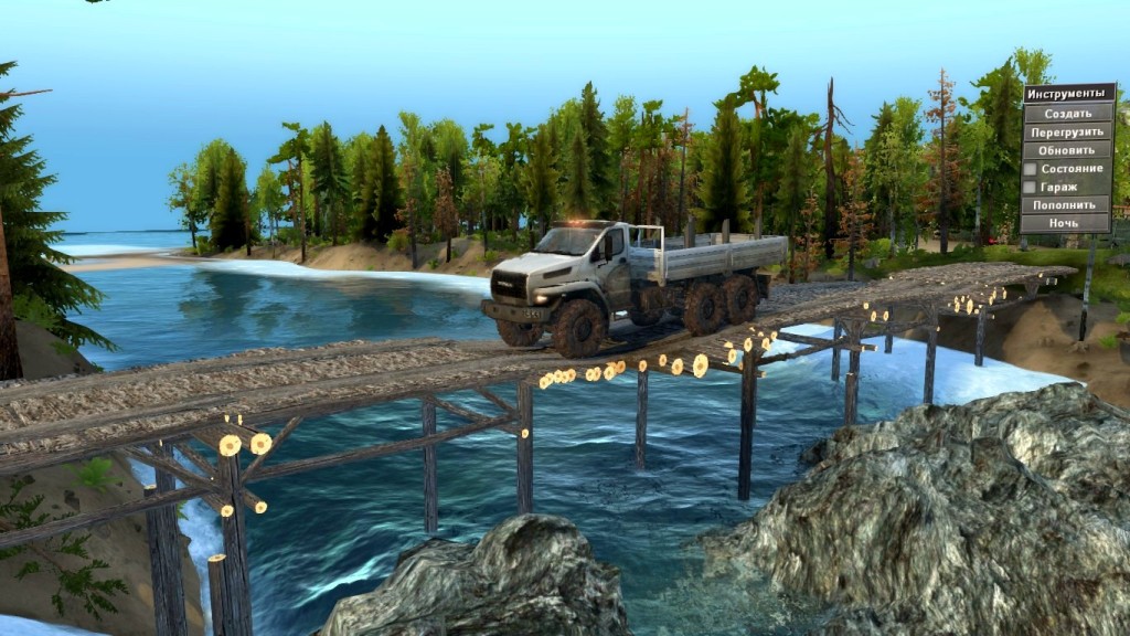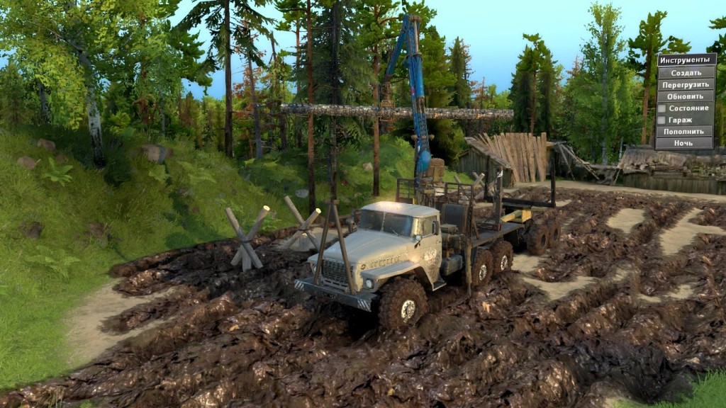 On the map: 2 garages (1 opened) 2 refills 1 sawmill + 3 loading points 7 saws 7 points of exploration 3 machines + 5 slots