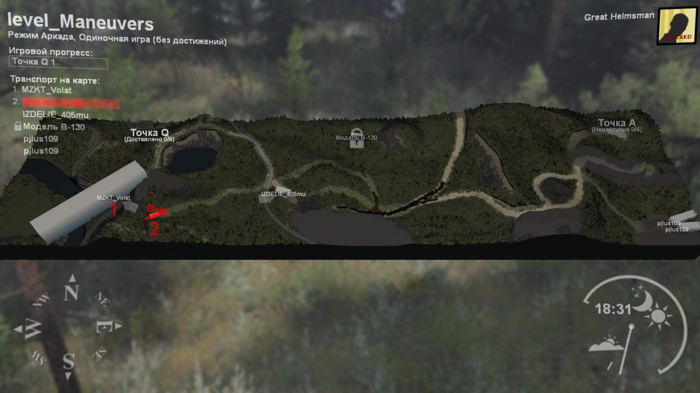 MOD Map "MANEUVERS" FOR SPINTIRES (V03.03.16) The essence of the plot: You are in training. You need to deliver the rocket to point A, then from one base deliver the equipment to another base (point Q). Description: The map has everything you need to go through. Advice - as soon as you leave the wheat field and cross the ford, it is better to transfer to the UAZ and conduct exploration, then continue driving. The rocket should be transported very carefully and slowly so that even if it comes off the hitch, you have time to fix everything. I lose a trailer with a rocket three times out of three times, but this is due to haste. Important! Without SpinTires Plus, the passage will become much more difficult and uninteresting, since there is a tracked mod, which is simply necessary there.