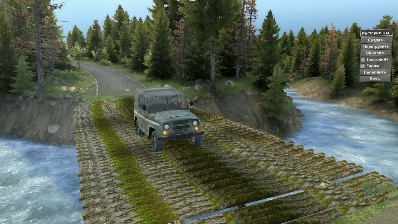 before you left the people of the area near the village of chan-stream. deforestation has just begun, but problems have already arisen: a truck that carried everything necessary for work, never got to the garage, and the sawmills are idle without work. sit in your car and find a distressed truck, and also fill the sawmills so that the scaffolding is in full swing. forward!
