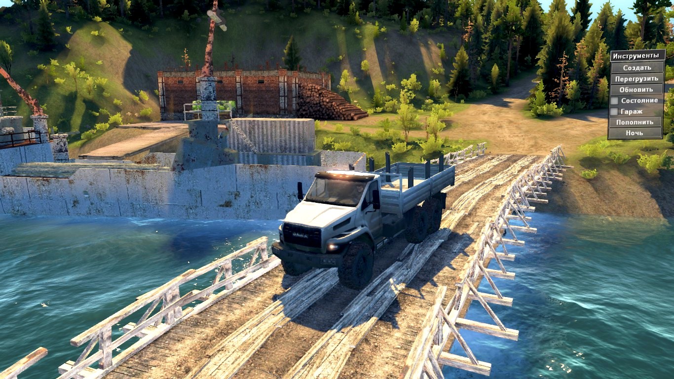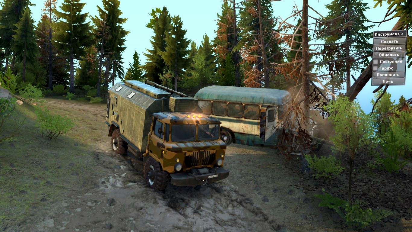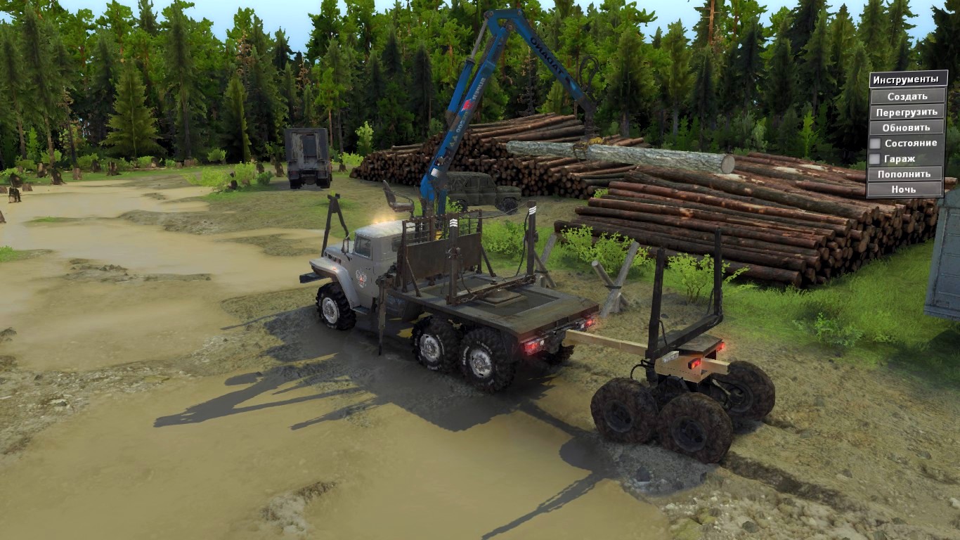 On the map: 1 garage (closed) 1 felling 1 refueling 1 point of loading 5 saws 4 points of exploration Gas-66, trolley van, 2 garage trolleys + 3 slots