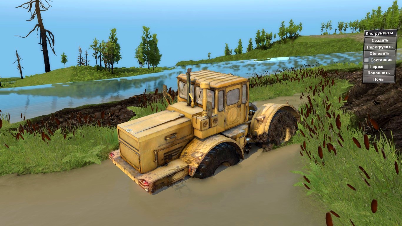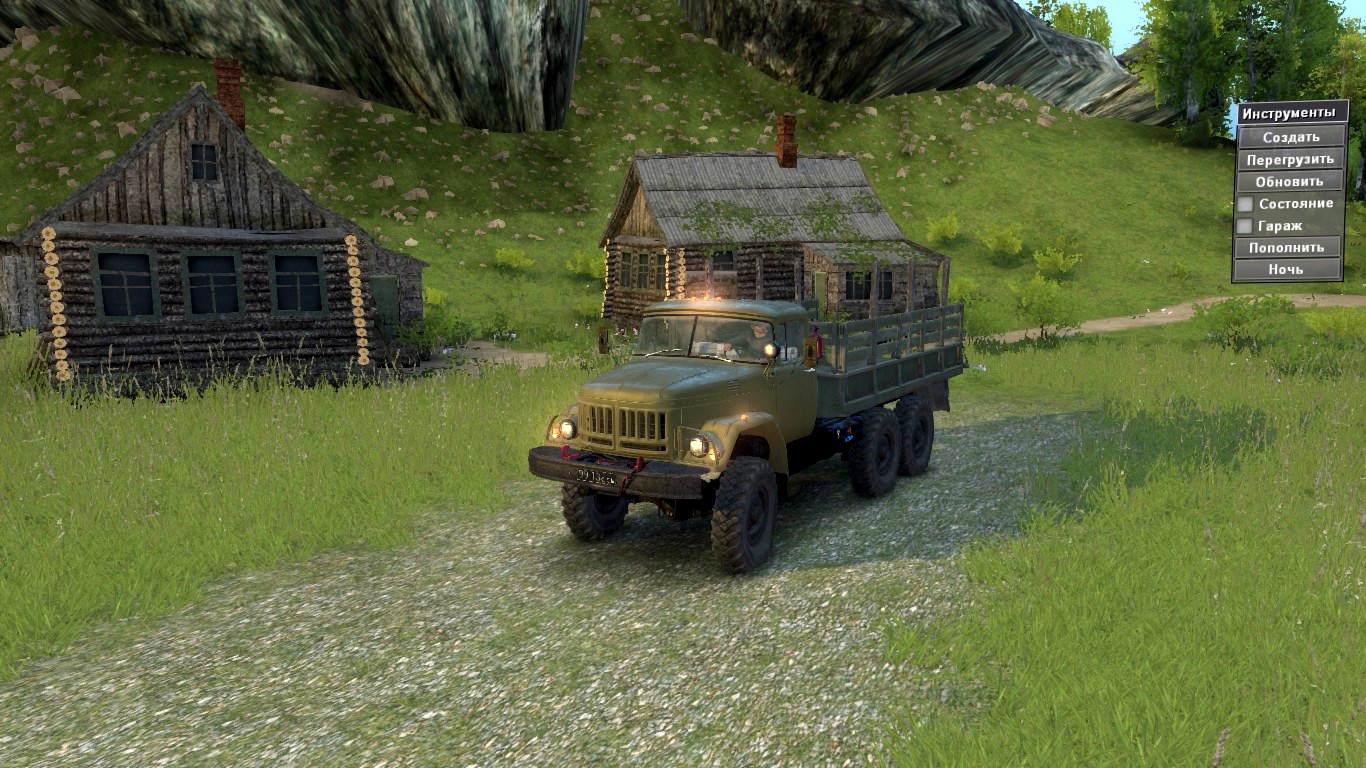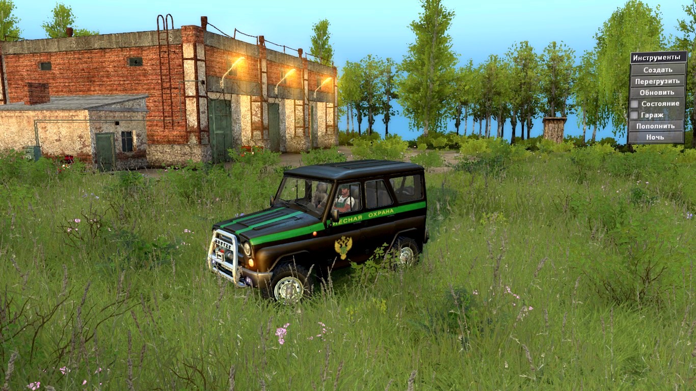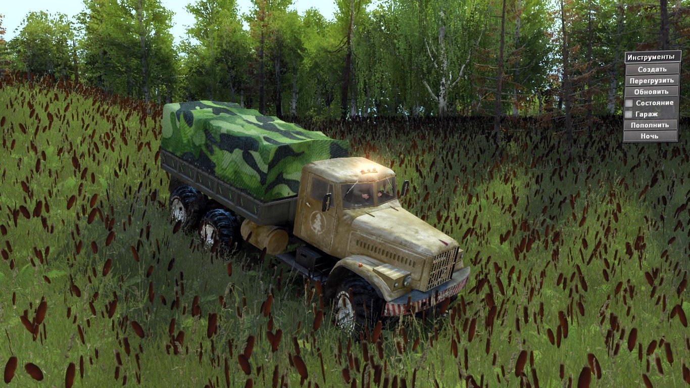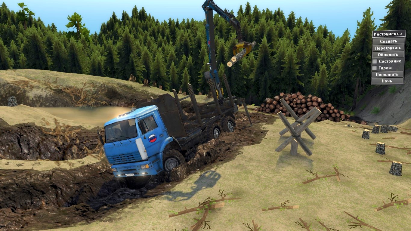 Map of the maximum sizes. On the map: 1 garage (closed) 1 refueling 1 felling 2 sawmills 5 cars (Kraz-255 2 pcs., Oaz-469, K-700, Kamaz-6522) + 4 slots