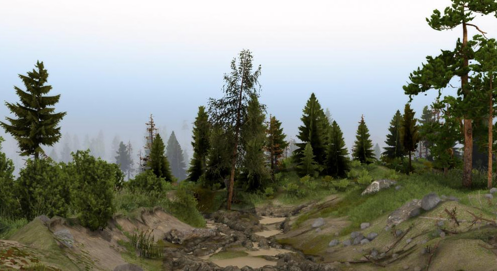 MOD MAP "VPADINA" FOR SPINTIRES V03.03.16 /1.7.1 There is one garage on the map, which is closed. To open it, you need to deliver two trailers with garage parts to it, and, well, actually take out the wood from a deep depression. P.S The card was tested on version 1.7.1 and on 12/25/15. Maximum size map On the map: