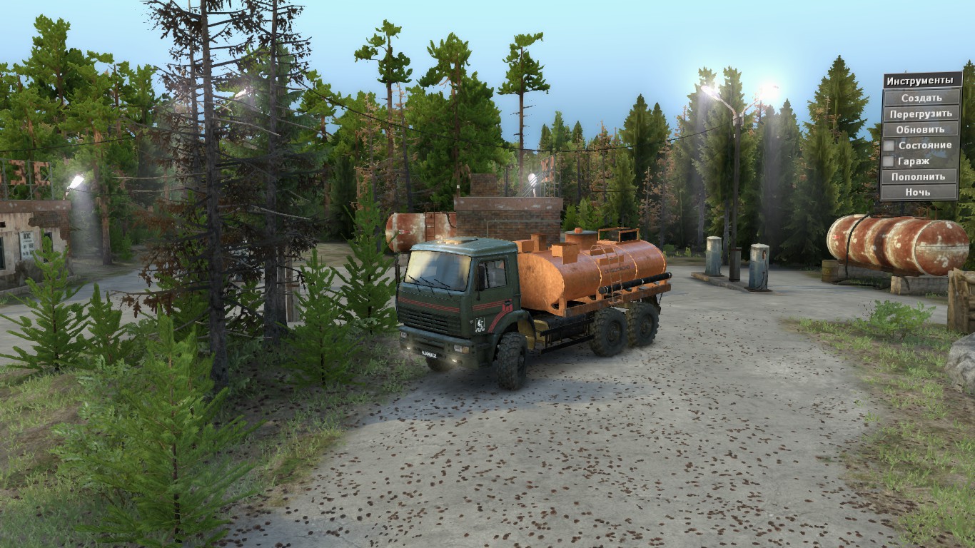 On the map: - 1 Garage (closed) - 1 Refueling - 4 points of intelligence - 1 Timber - 1 loading point - 5 Sawmills - 4 slots for your car + 3 cars on the map