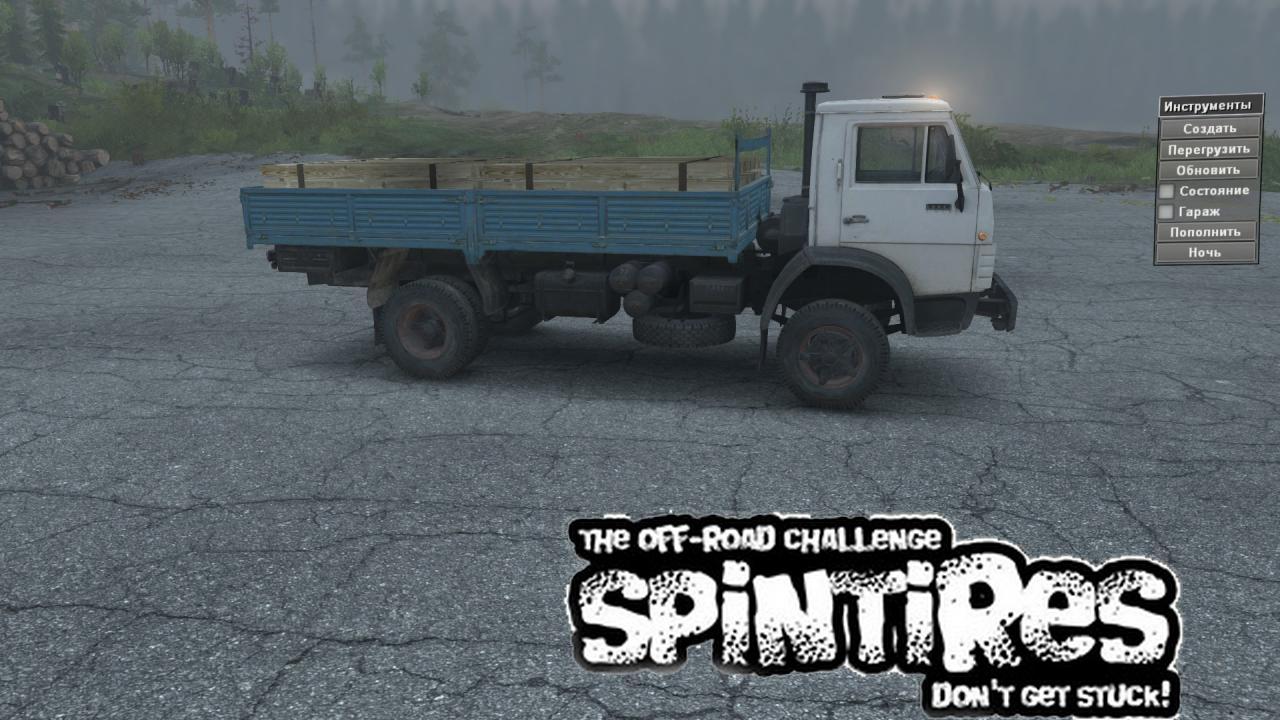 MOD KAMAZ-4325 (4X2) FOR SPINTIRES V03.03.16 Envelope from MudRunner. KamAZ-4325. The pack contains 2 cars of different colors. Cross-country ability at the level of all-wheel drive default. Author: Shashok75