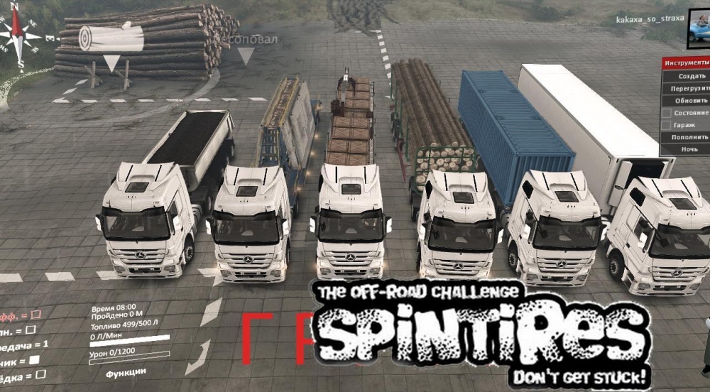 Mod Mercedes Benz Actros for Spintires (v03.03.16/1.3.7) The mod has 2 cars, 4x4 and 6x4. But still, I prescribed them all-wheel drive. Yes, yes ... Fighters for realism, do not just press the "E" button and you will be happy, sit in each puddle. The mod has: - 2 cars Credits: arshinskiy03 |