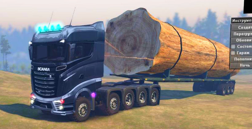 Mod Scania R1000 for Spintires (v03.03.16) The SCANIA R1000 is a good truck with good cross-country ability. Cargo transportation up to 8 points, in this fashion, alas, Lenka did not fit with canisters, but for large and long transportations, I think the partner will not hurt. Increased clearance. Test and drive. The mod was taken from the pack. Thanks to the authors whose mods, add-ons and textures were applied: Nicklegosta, Mingfeng, Dmitry Tkachev, solo, Sergo, Marco Aurélio Andrade. There are add-ons, View from the cockpit, Own sounds Credits: vodila777 |
