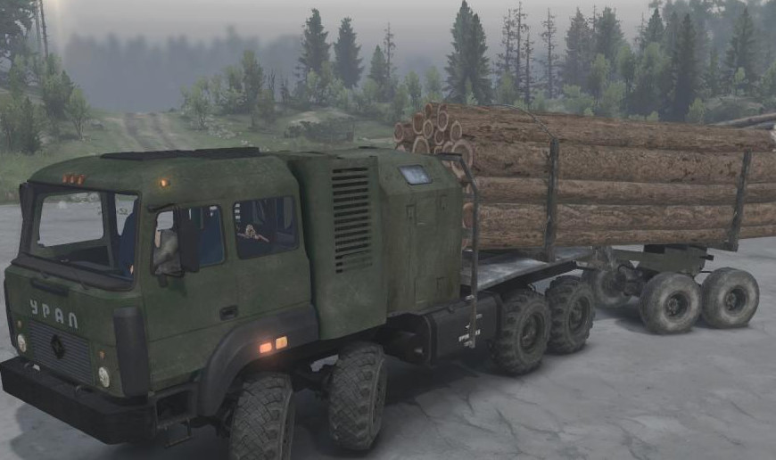 MOD URAL-5323 FOR SPINTIRES V03.03.16 This mod was taken as a basis. Base Ural 3111, but with a modified front part for Ural 5323 and an extended frame for 8x8. I did it for a friend, I decided to share it with you, I added cross-country ability, a couple of add-ons and repainted the cabin and add-ons to match the color of the cabin. The mod has: - 6 of their add-ons + default add-ons;