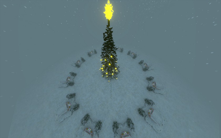Gingerbread Village – это деревня где домики построены из пряников. На карте расположена огромная елка, украшенная к новому году, а по кругу расположились пряничные домики в каждом из которых есть атрибутика праздника. Всего тут 12 домиков. Credits: RTXGaming |