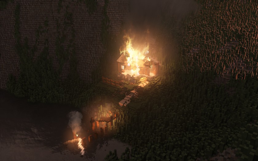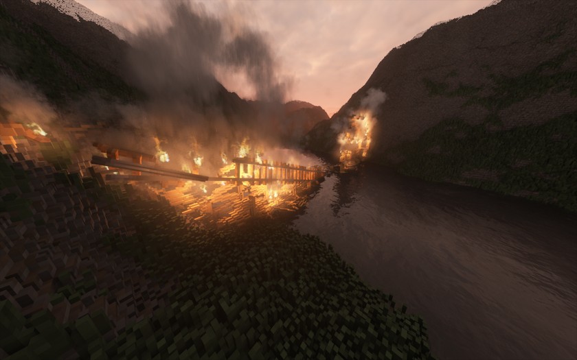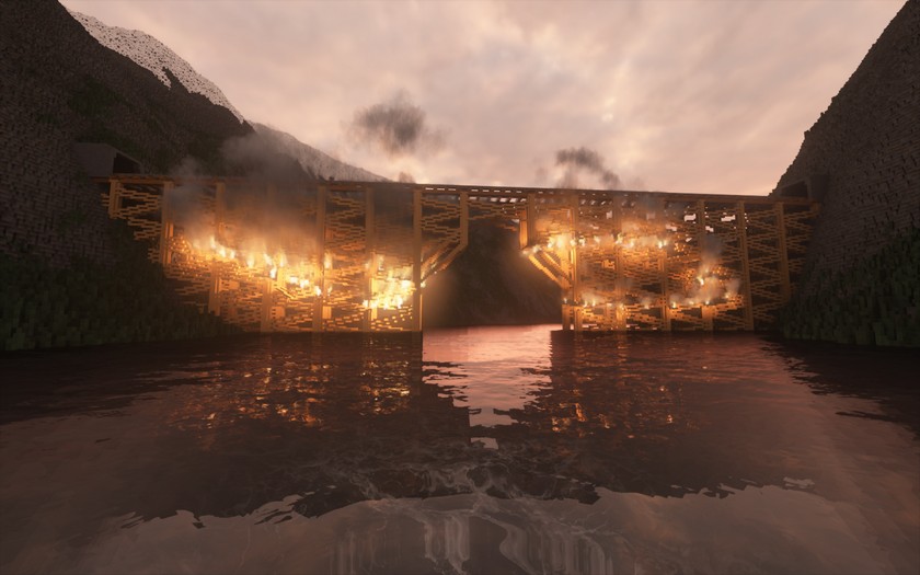 Old Bridge is a mini map with an old railway bridge, a fisherman's house, mountains and a mountain lake. All the buildings are made for dwarfs, you can't enter the house, because it's small, and the railway road on the bridge is designed for mini trains and trolleys. All buildings are completely destructible. The most spectacular destruction of the bridge is its arson from the bottom. Credits: Terminator |