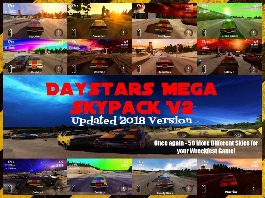 Once again, enjoy 50 more skies for your game! This is the new track Bonebreaker Valley. Upgrade your Wreckfest until 06/07/2018, it will download your latest update with a new track. Credits: Daystar |